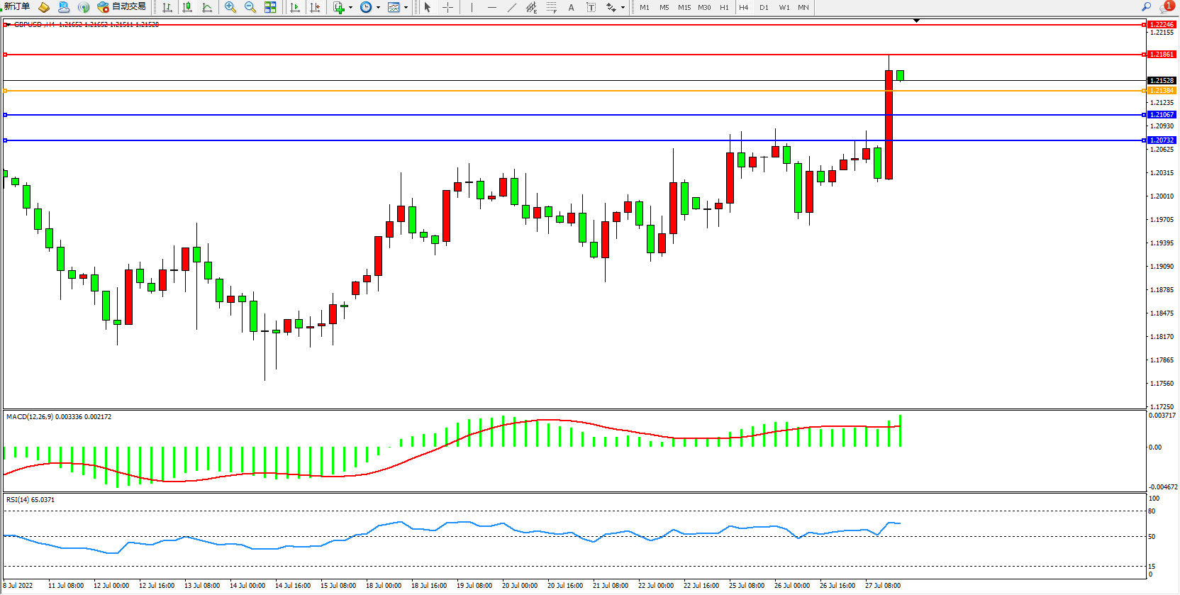 英镑美元GBPUSD ——4小时K线图显示: