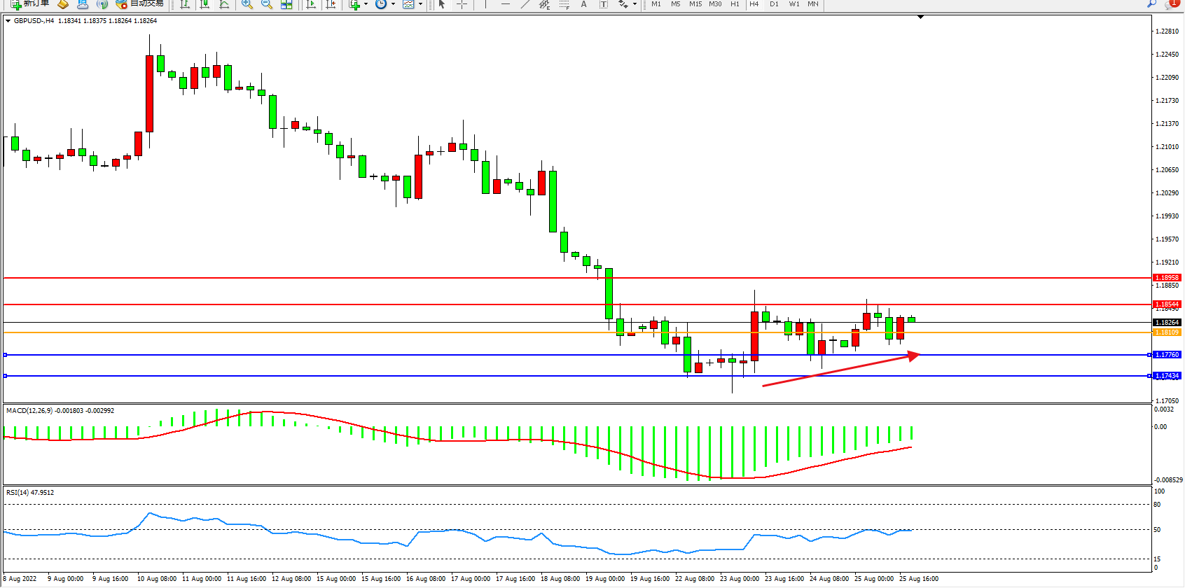 英镑美元GBPUSD ——4小时K线图显示: