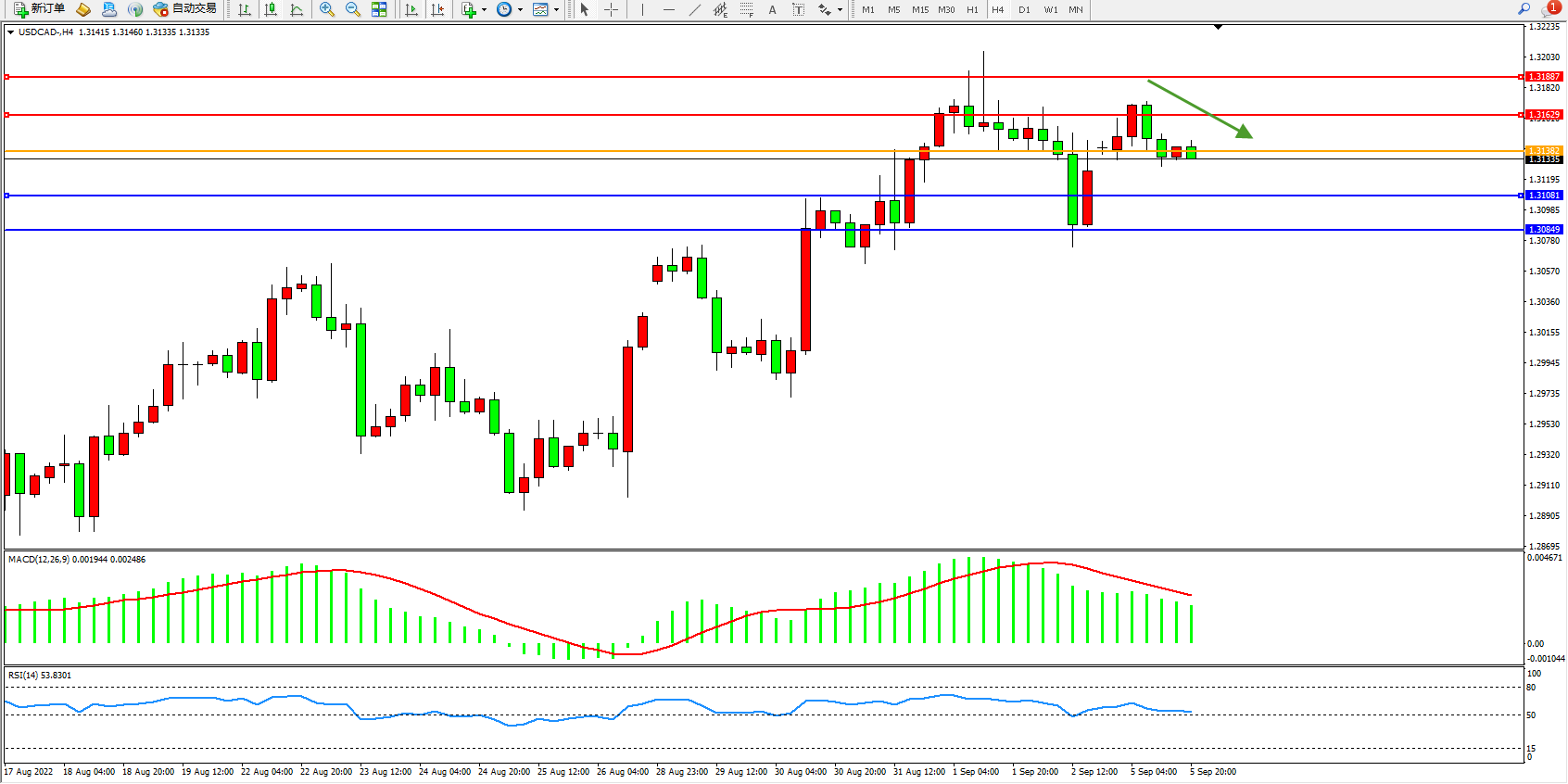 交易策略:1.31382下方看跌,目标1.31081、1.30849