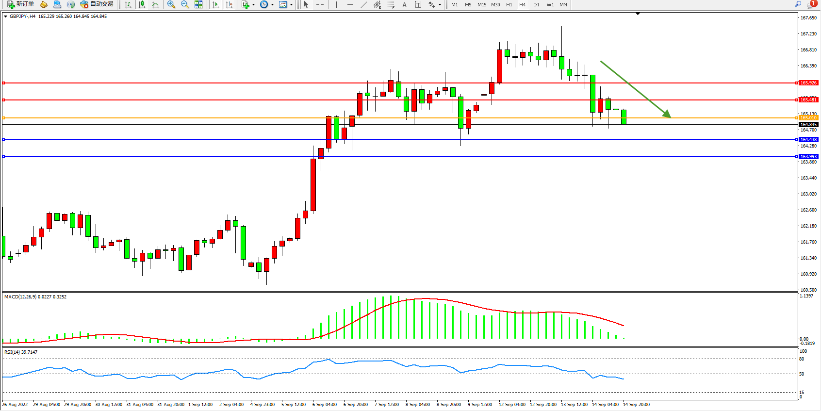交易策略:165.010下方看跌,目标164.438、163.993