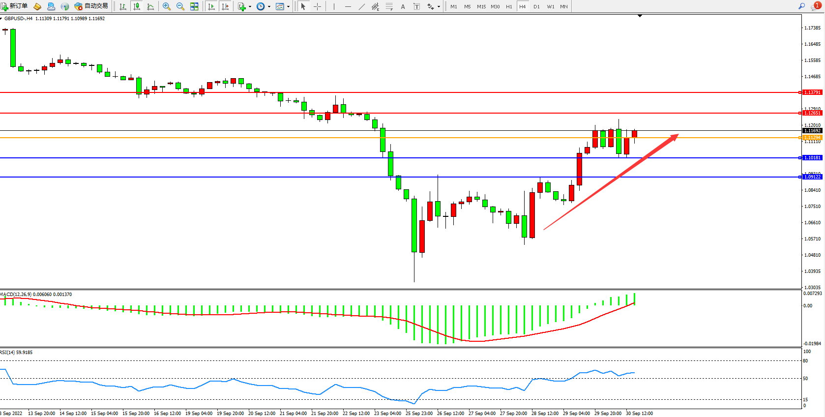 英镑美元GBPUSD ——4小时K线图显示: