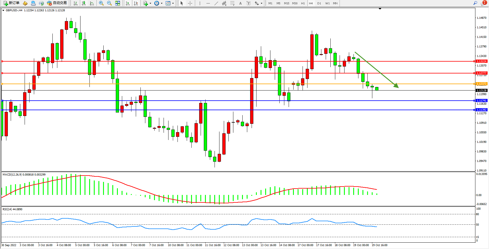 英镑美元GBPUSD ——4小时K线图显示: