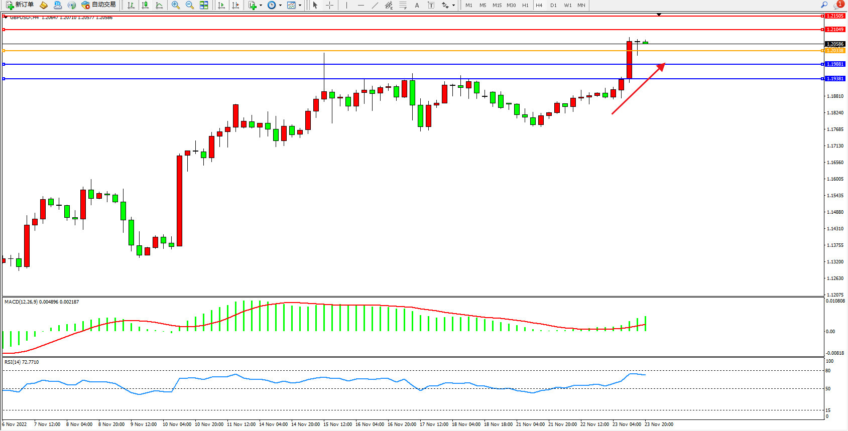 英镑美元GBPUSD ——4小时K线图显示: