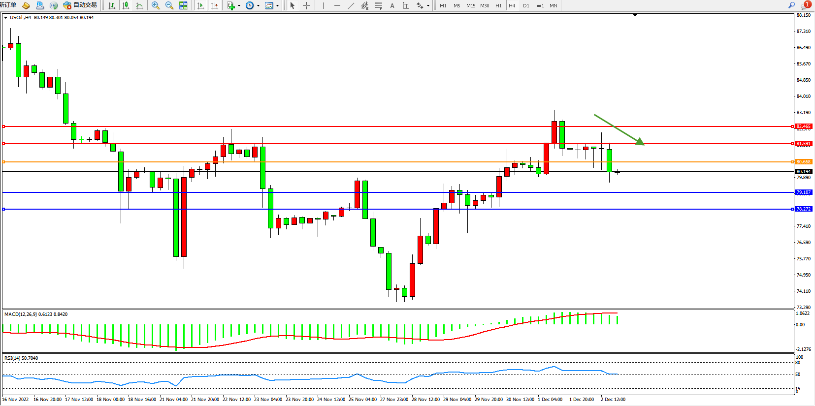原油USOil——4小时K线图显示: