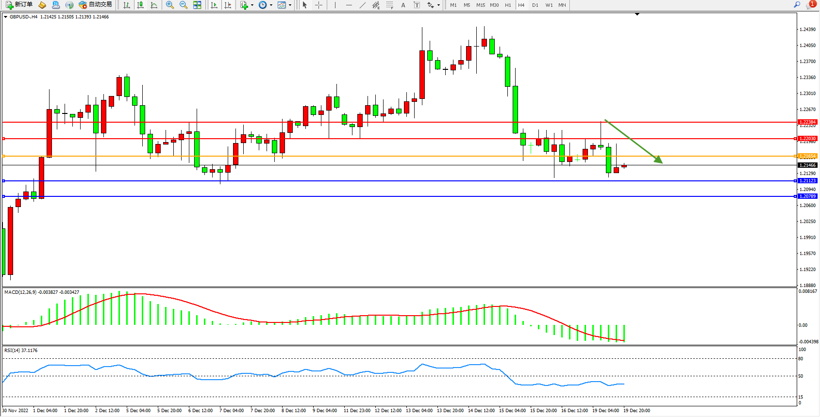 英镑美元GBPUSD ——4小时K线图显示: