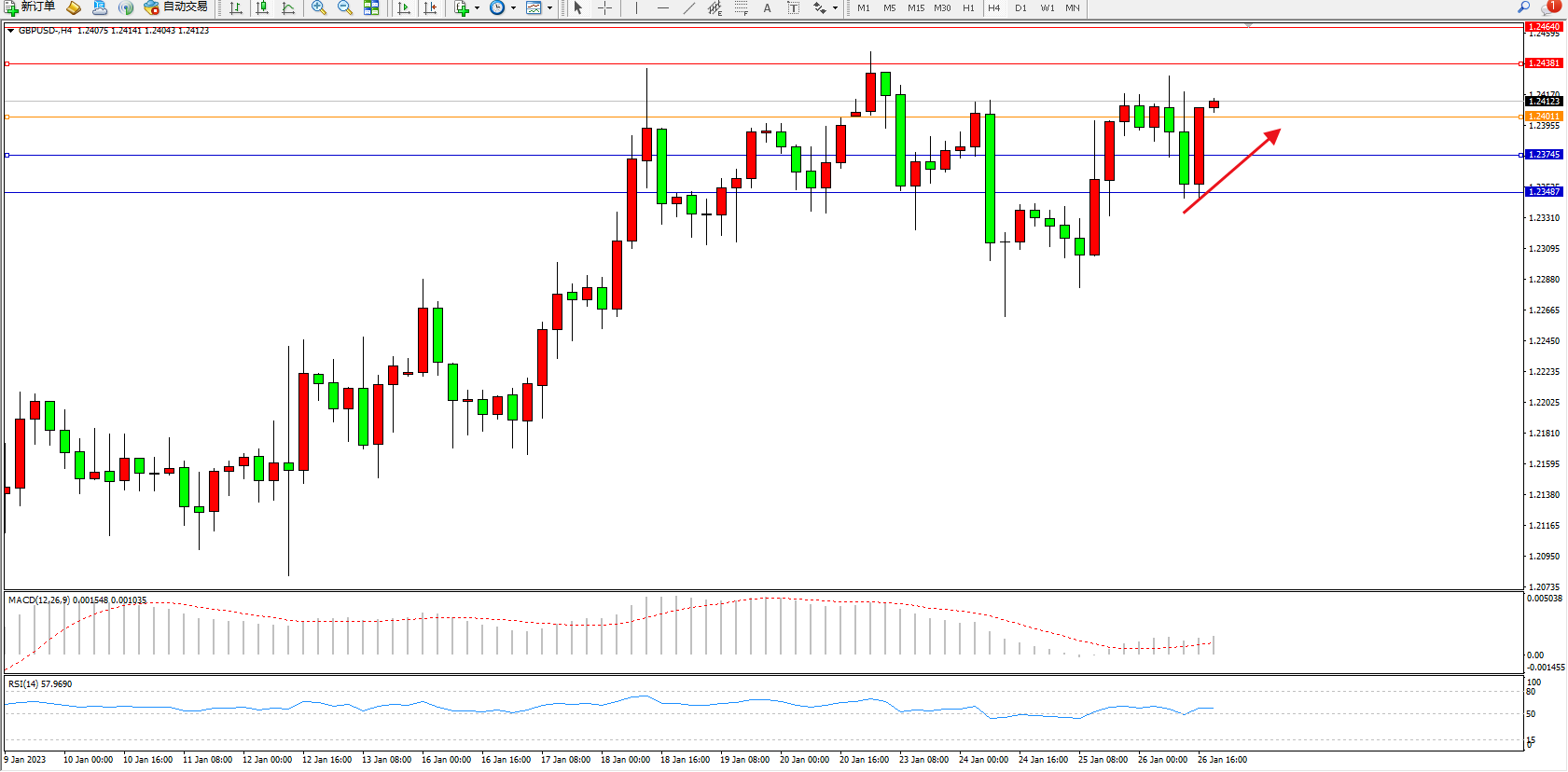 英镑美元GBPUSD ——4小时K线图显示: