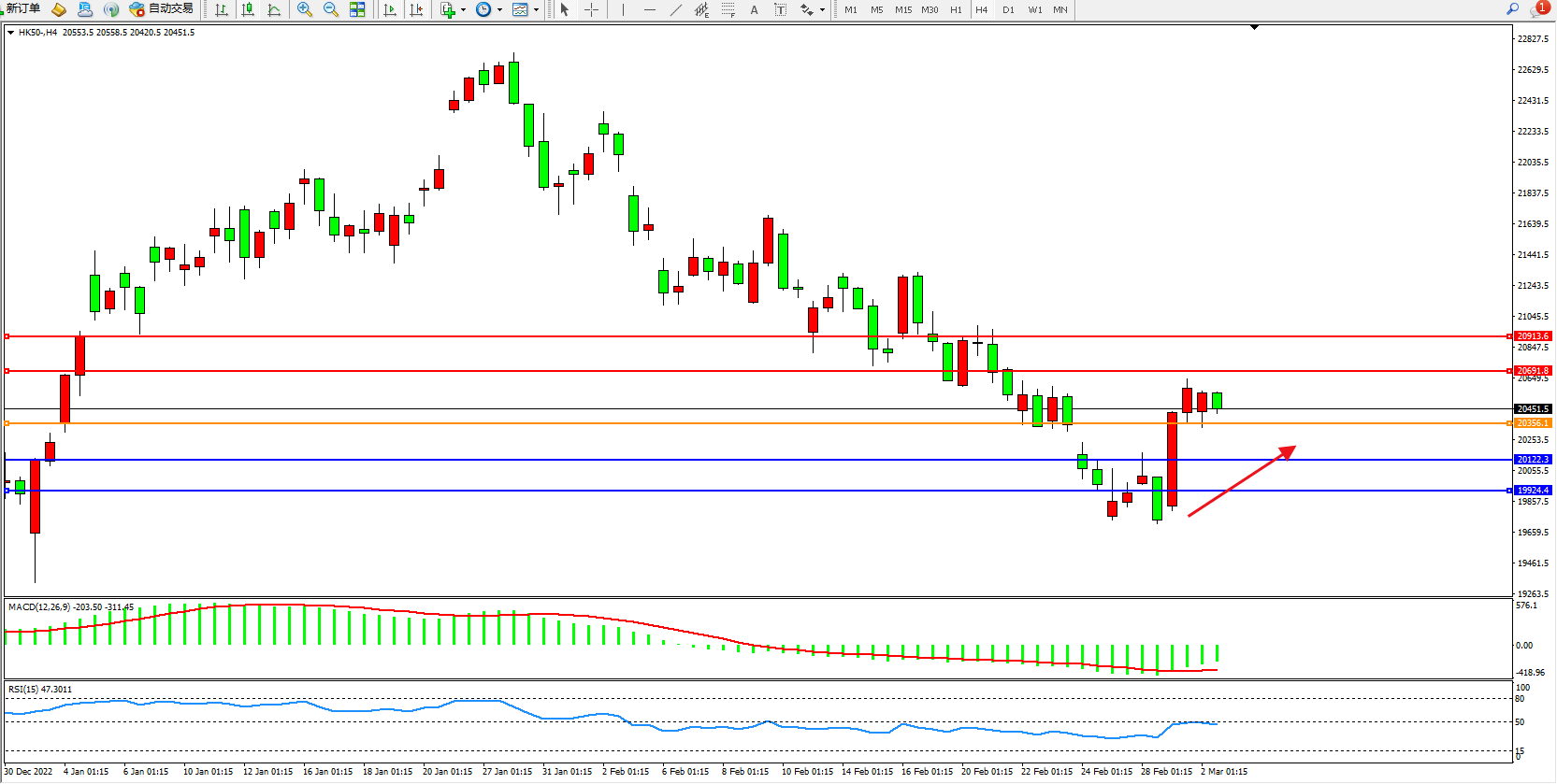 恒指HK50 4小时图