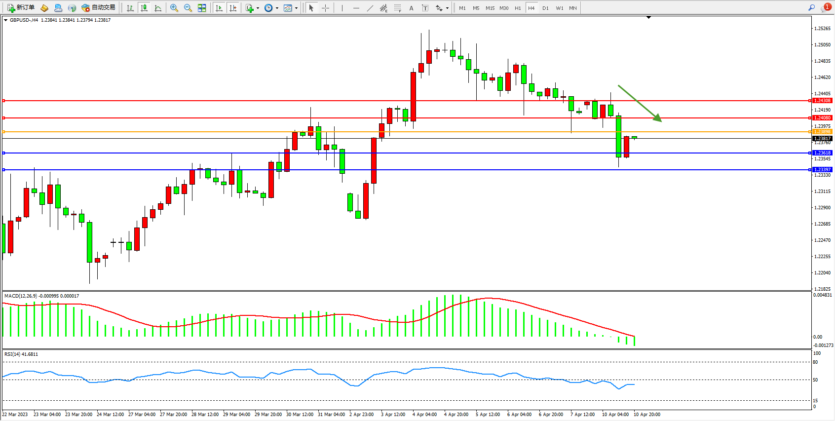 英镑美元GBPUSD ——4小时K线图显示: