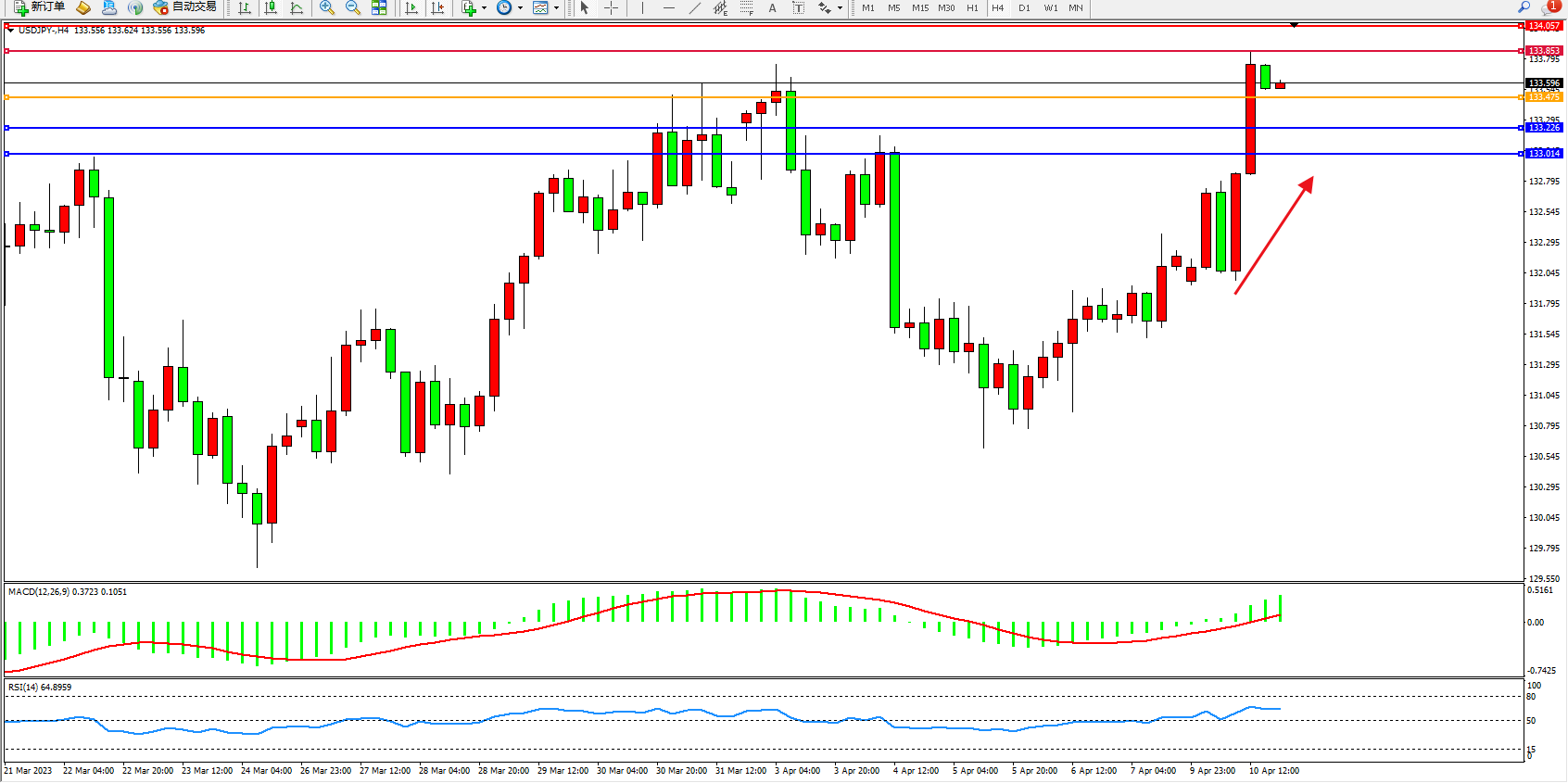 交易策略:133.475上方看涨,目标133.853 134.057