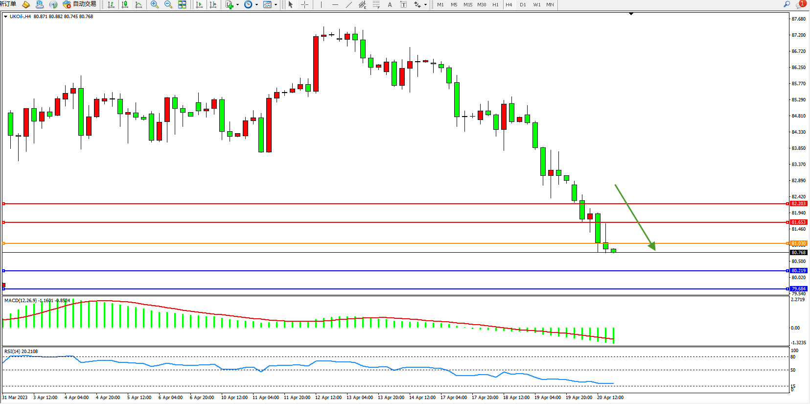 交易策略:81.030下方看跌,目标80.219   79.684