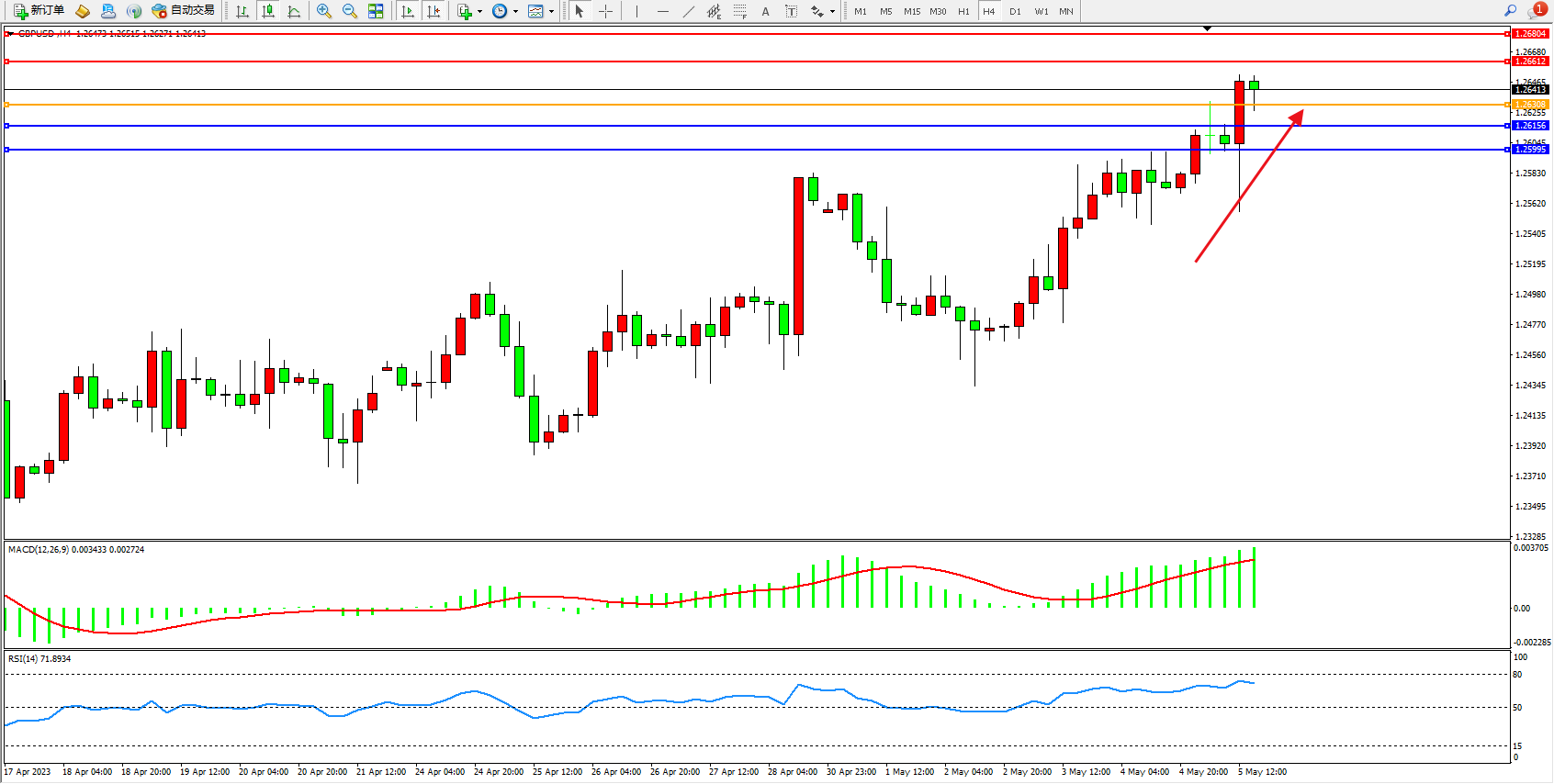阻力位:1.26612 1.26804