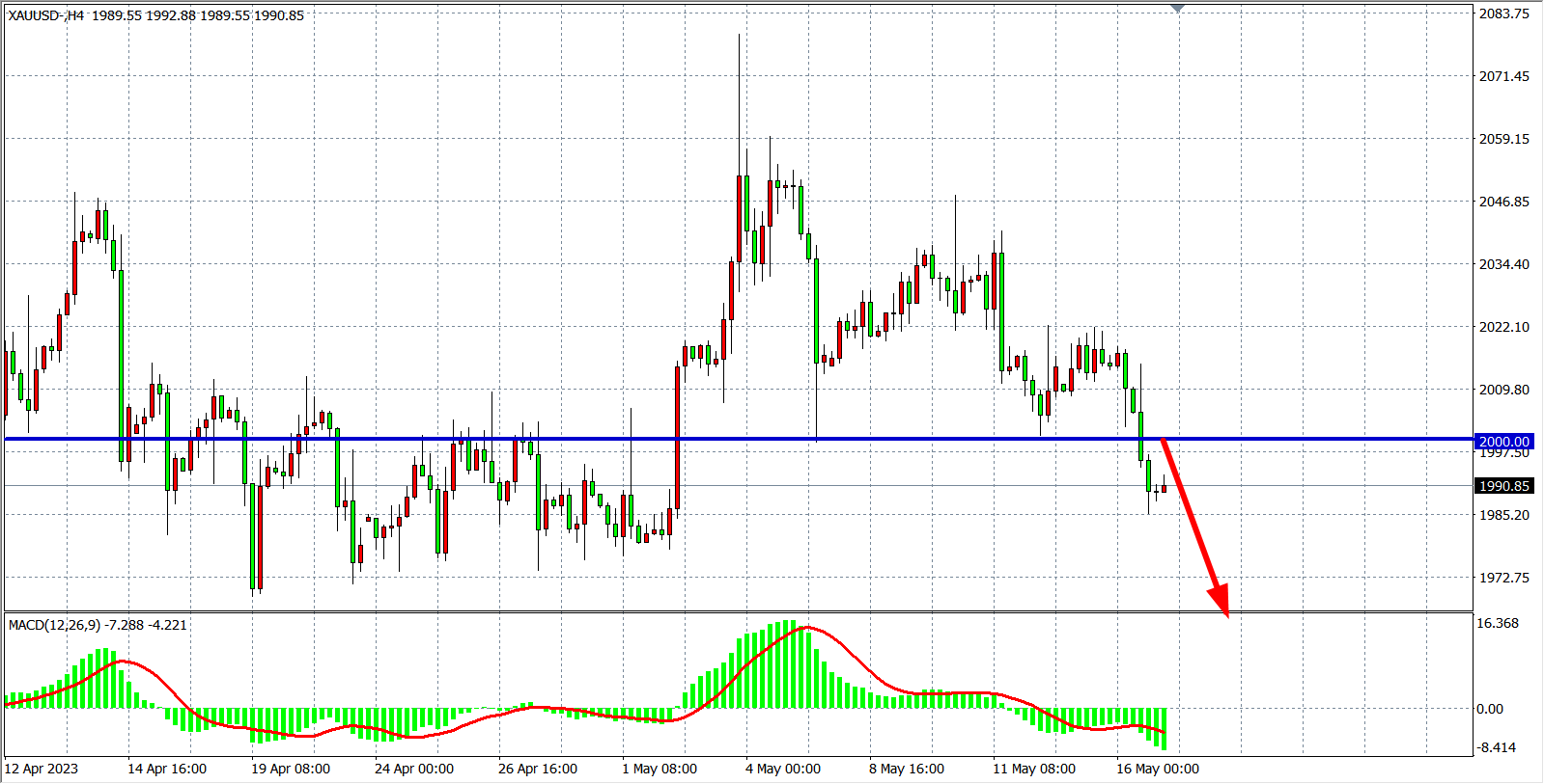 现货黄金XAUUSD 四小时图