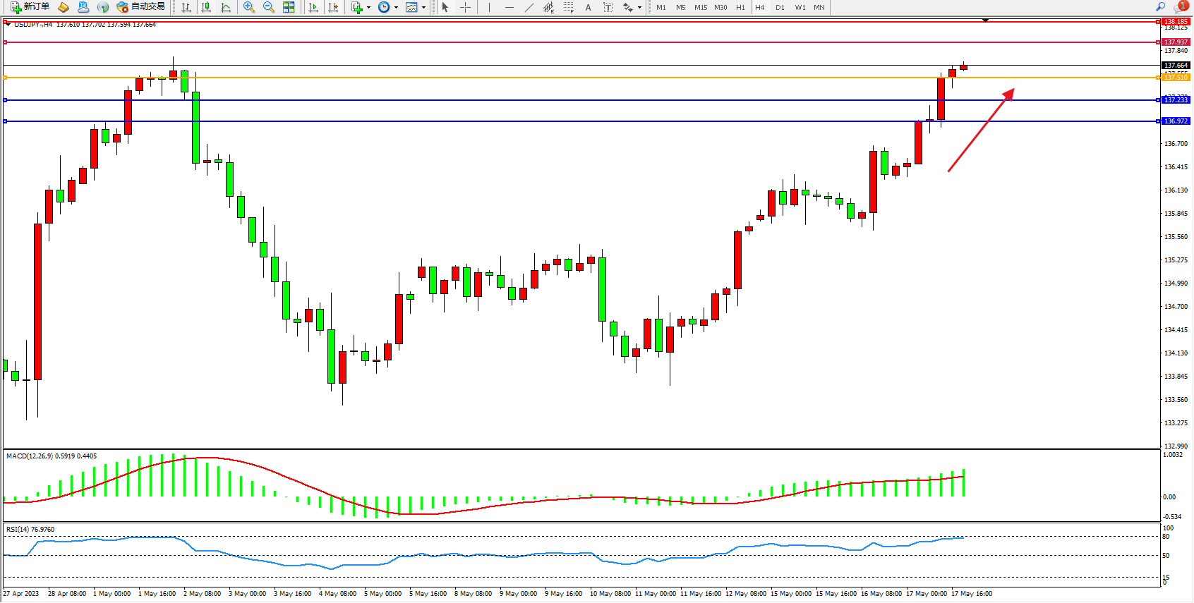 交易策略:137.510上方看涨,目标137.937 138.185