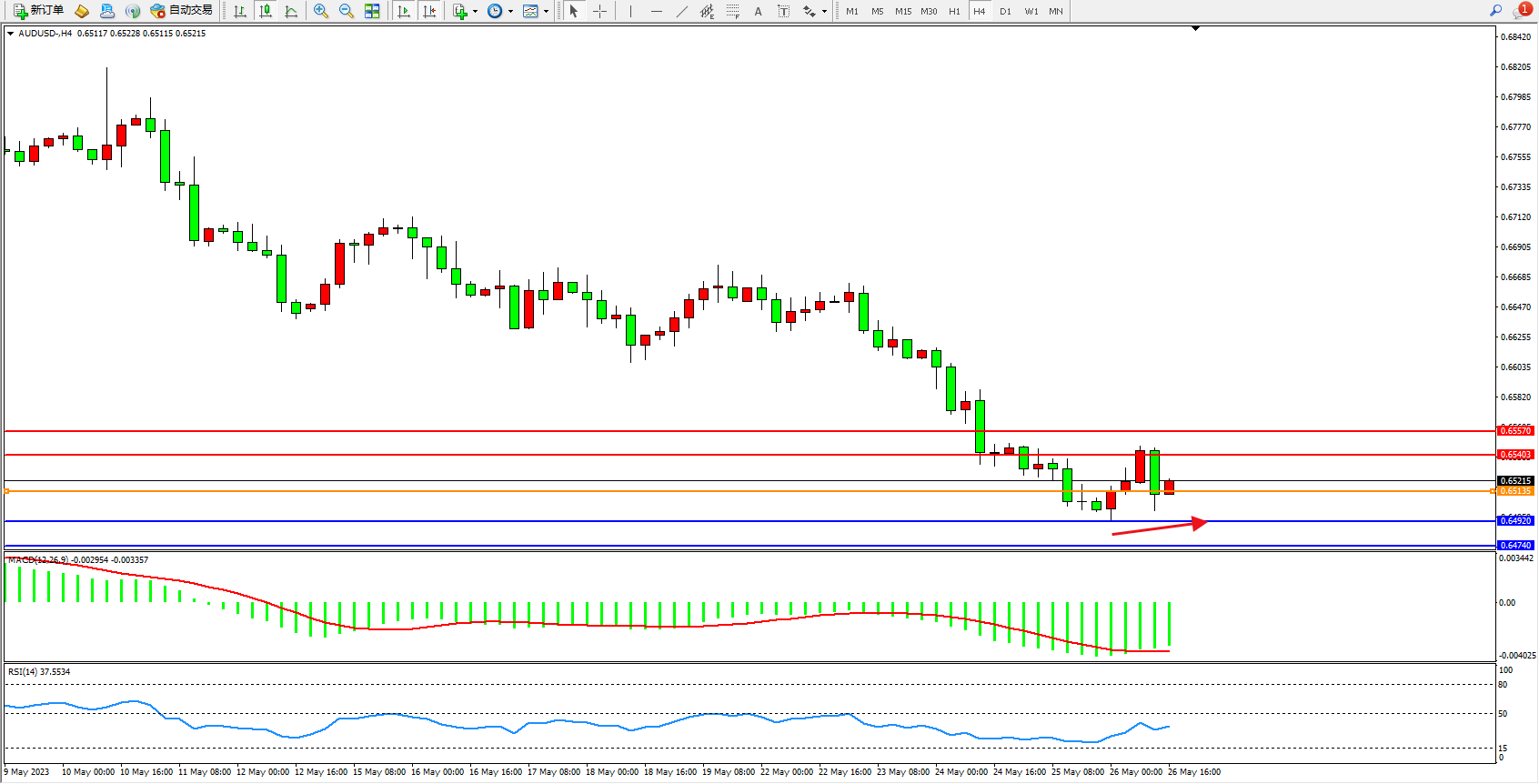 阻力位:0.65403 0.65570