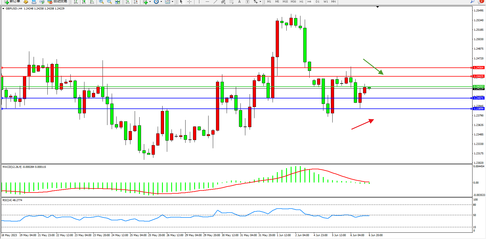 英镑美元GBPUSD ——4小时K线图显示: