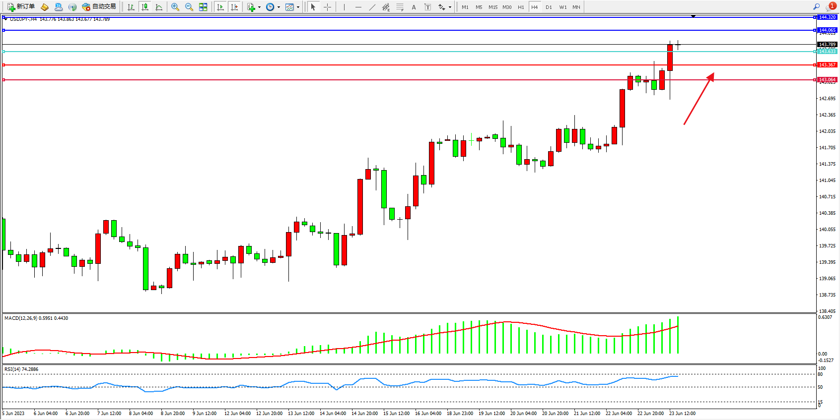 阻力位:144.065 144.320