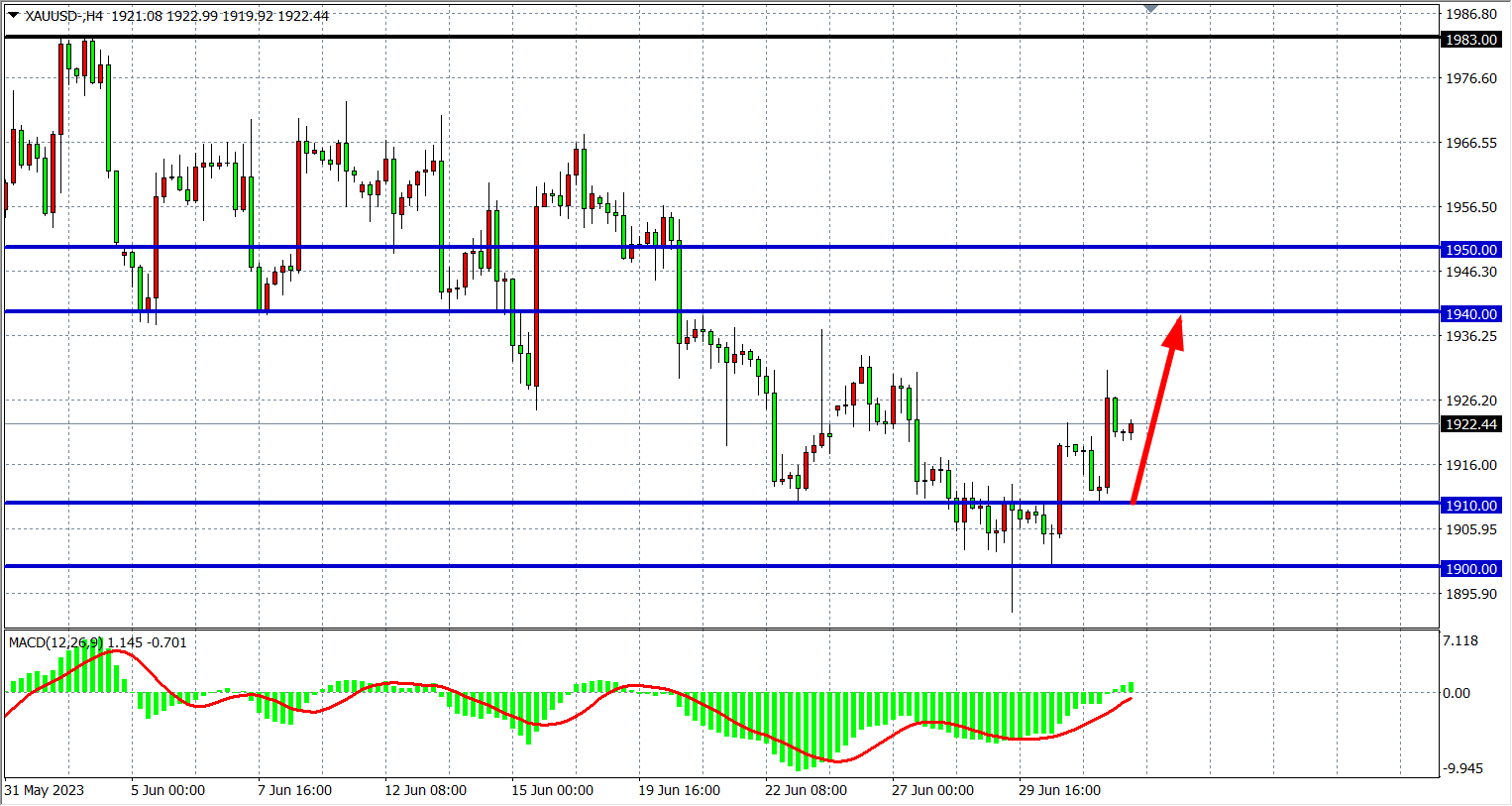 黄金:支撑上移1910