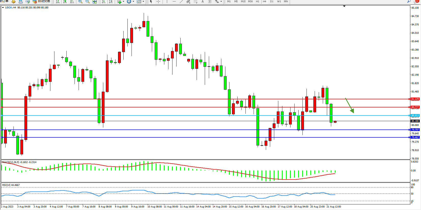 交易策略:80.413下方看跌,目标79.797 79.467