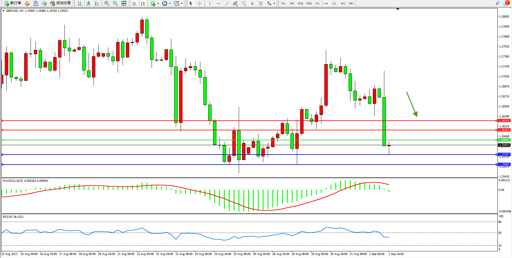 英镑美元GBPUSD ——4小时K线图显示: