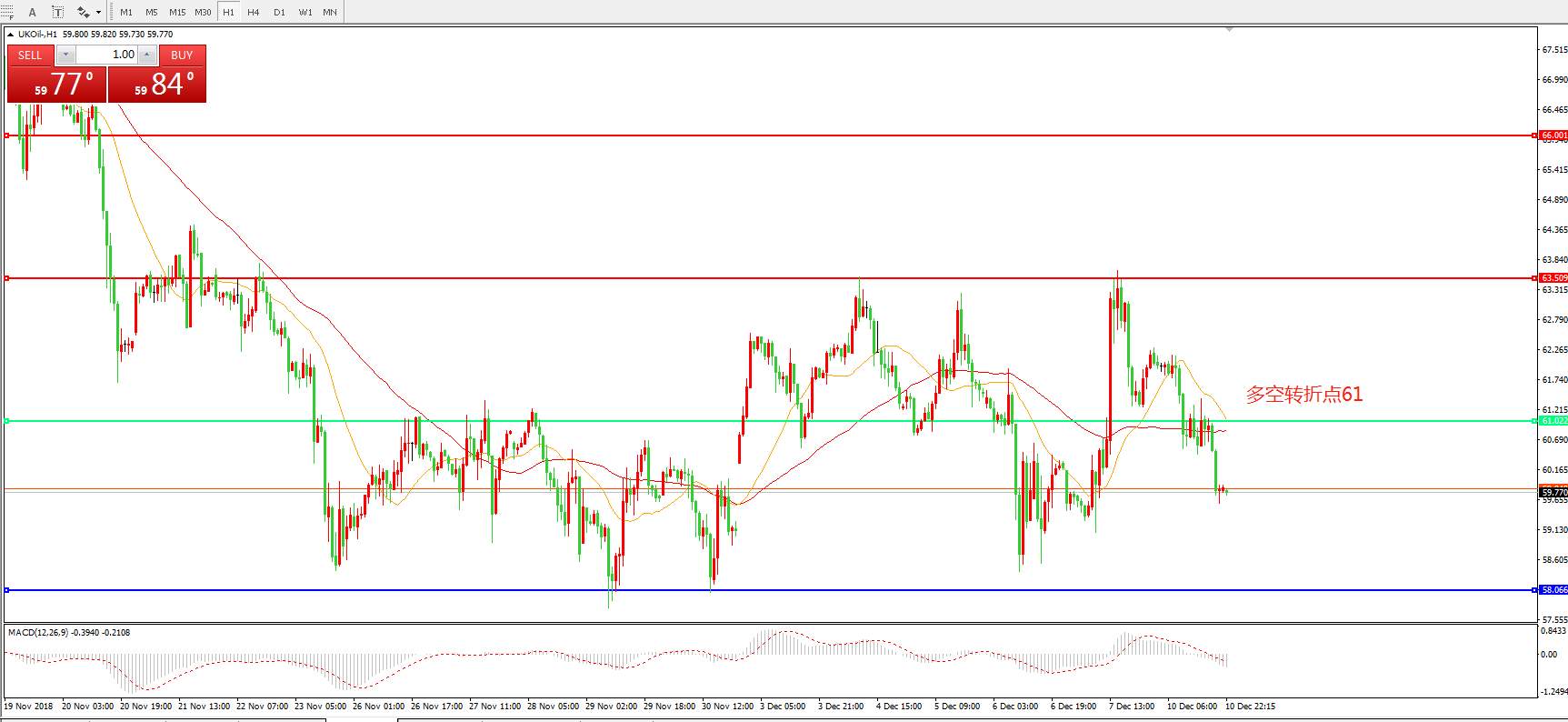 交易策略:在61.00之下看跌,目标58.00 55.00