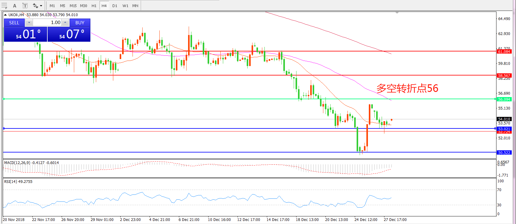 交易策略:在56.00之下看跌,目标53.00   50.00