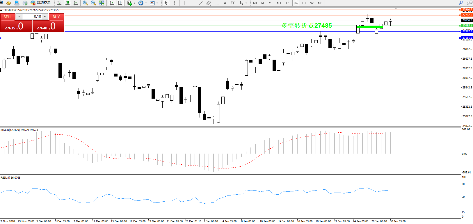 交易策略:27485上方看涨,目标27762、27914