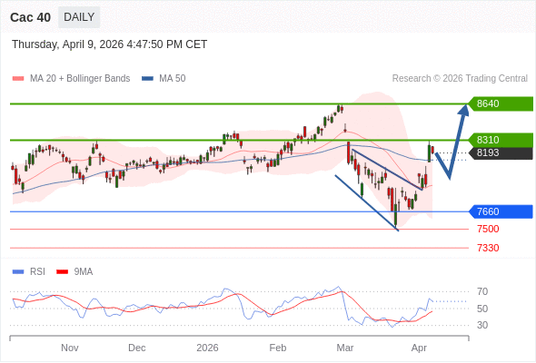 Cac 40 短线: 期待8310。