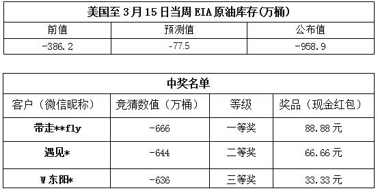 2019年3月第3期“EIA大竞猜活动的中奖结果已出,获奖信息如下: