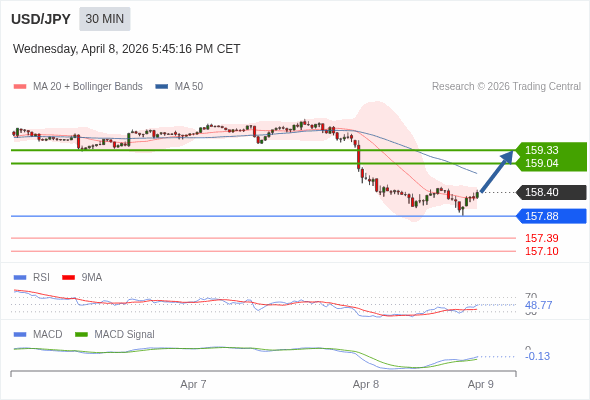 美元/日元 当日内 : 有上涨的可能,目标价位定在 159.33 。