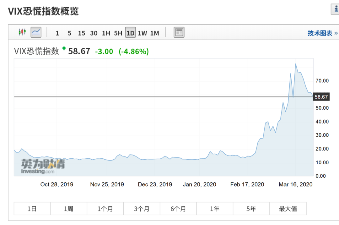 恐慌指数继续下探,意味着市场情绪正在转向平稳。当天下午16点30分左右,恐慌指数继续下跌至60以下,跌幅超4%。