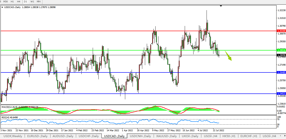 USDCAD:空头开始占据优势