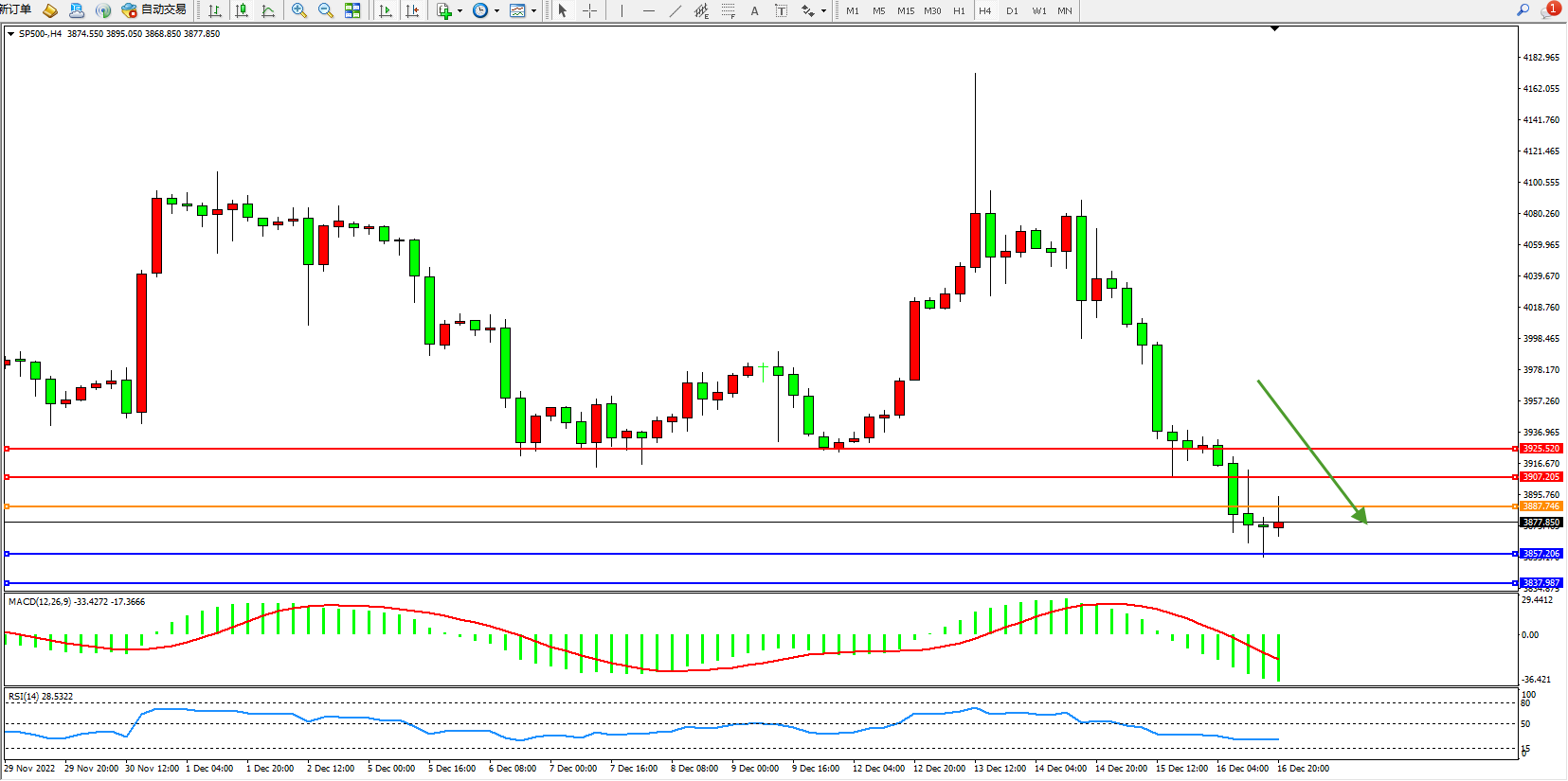 标普SP500——4小时K线图显示: