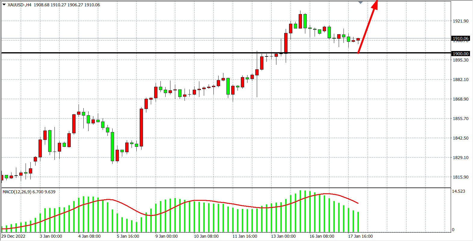 交易策略:在1900.00 之上看涨,目标1920.00         1930.00